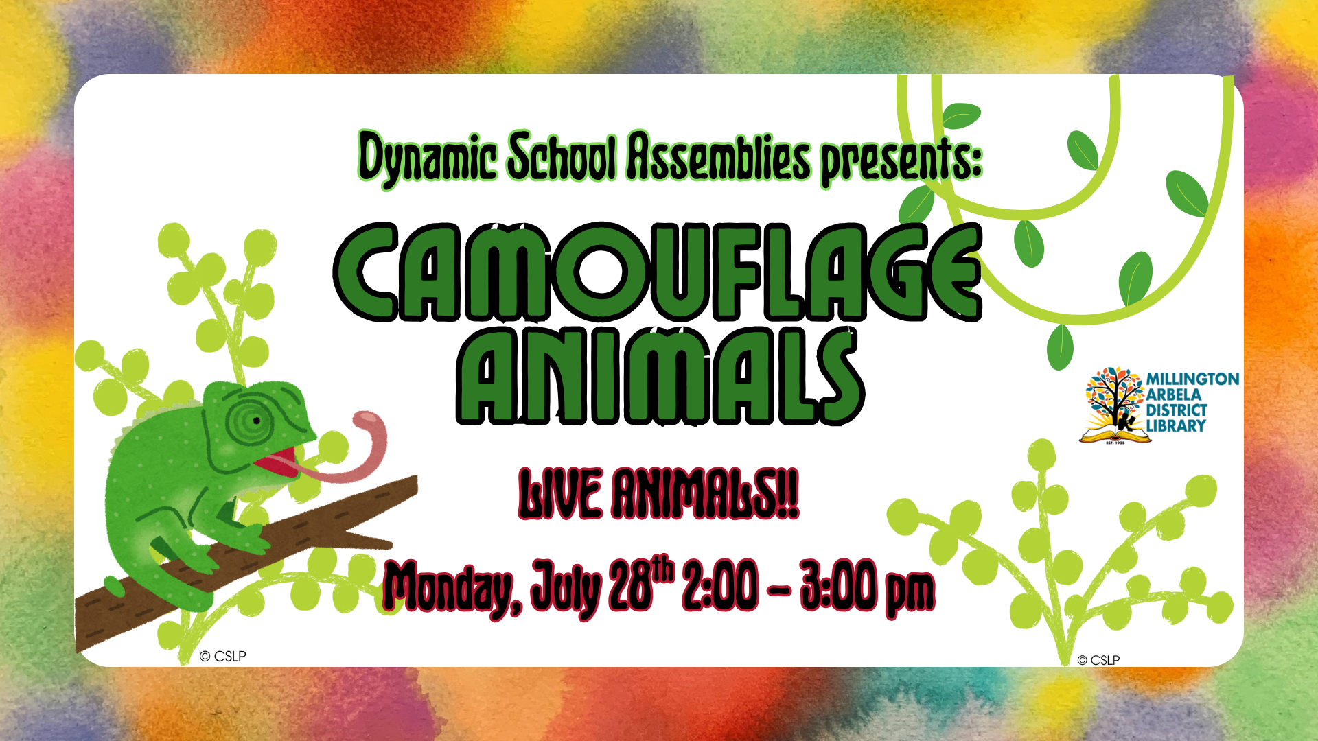 Join us for an amazing up-close, hands-on, and safe experience with live animals from around the world with Dynamic School Assemblies. Discover how animals use color to hide from predators or stand out to attract mates—it’s nature like you’ve never seen it before!