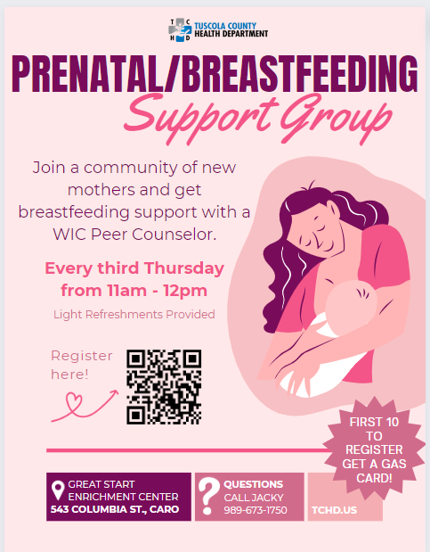 Breastfeeding and Prenatal Support Group every third Thursday held at the Great Start Enrichment Center in Caro.