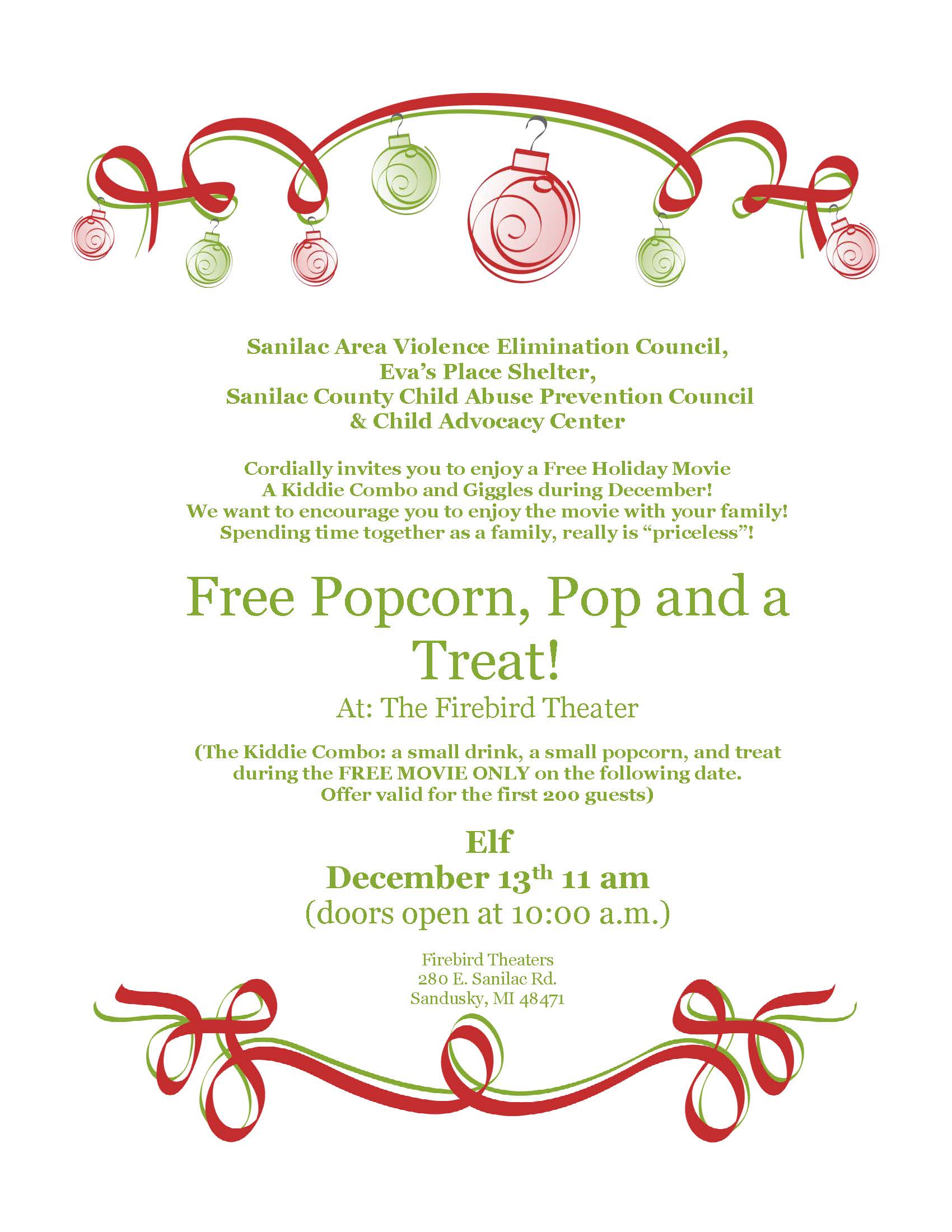 Free Holiday Movie Viewing by Sanilac Area Violence Elimination Council, Eva's Place Shelter, Sanilac County Child Abuse Prevention Center & Child Advocacy Center