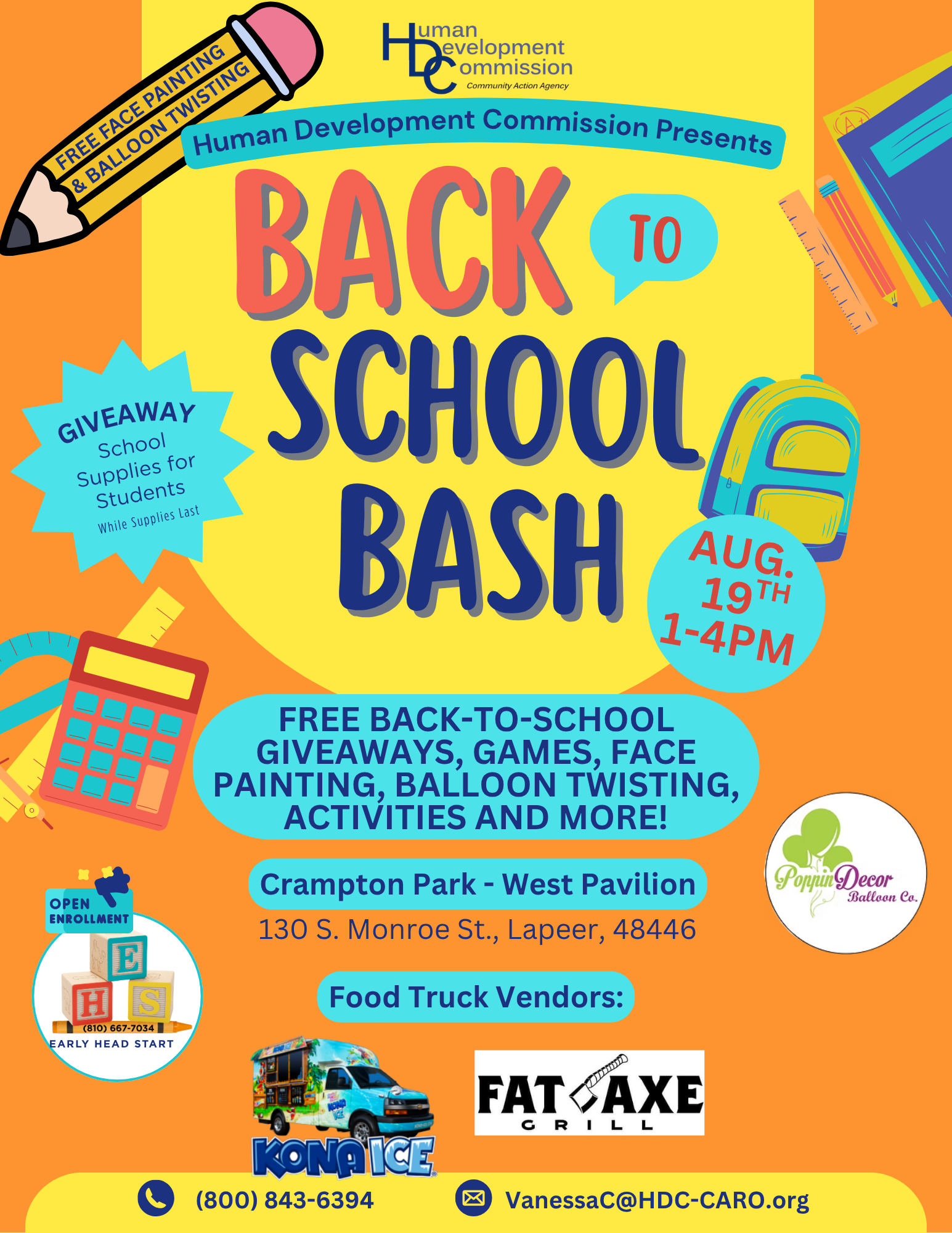 Join us for FREE family fun at our Back to School Bash, hosted by Human Development Commission! ?
