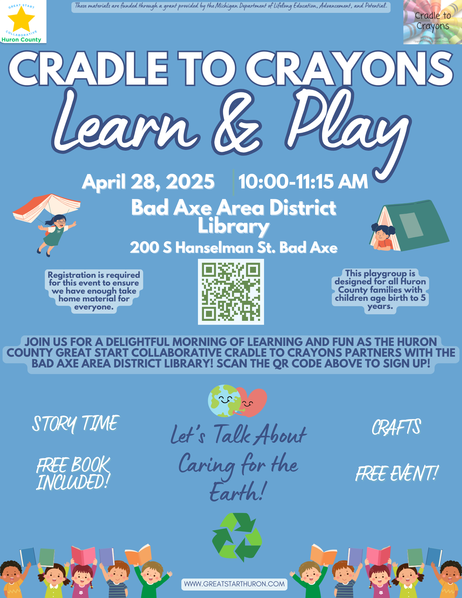 This free event is open for Huron County families with children between the ages of 0-5. Registration is required!