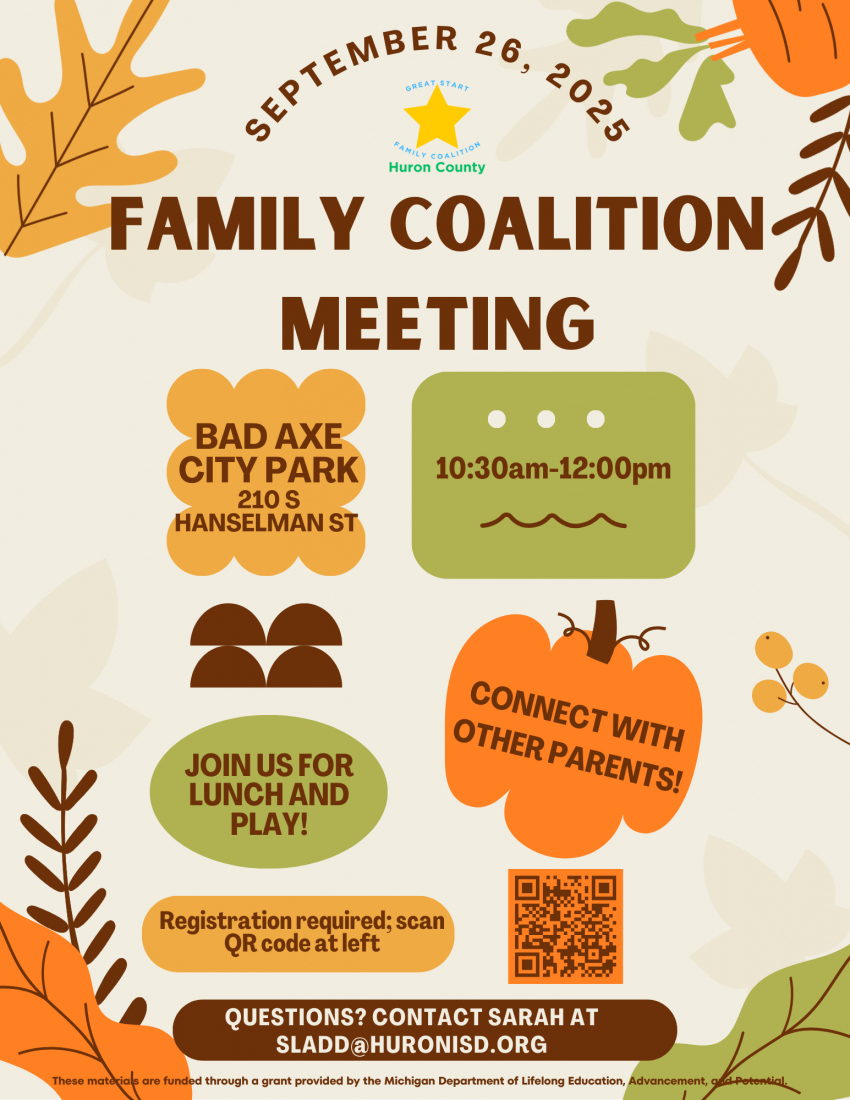 Family Coalition meetings are open to any parents/caregivers with children between the ages of birth-nine. Feel free to attend with or without the kids and meet other local parents! Registration required. Please see the flyer for more details.