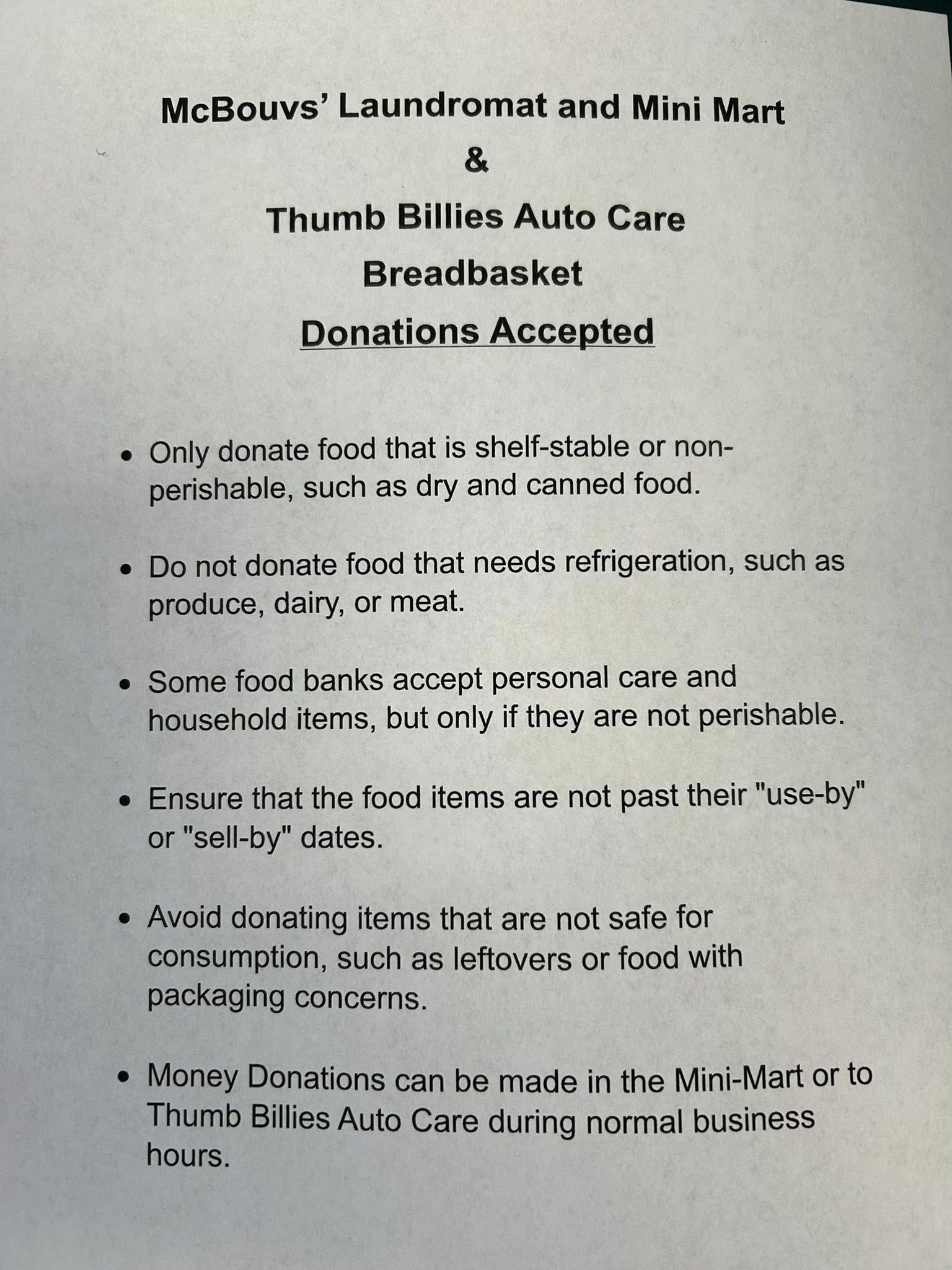 McBouv's Laundromat Mini Mart & Thumb Billie's Auto Care Breadbasket