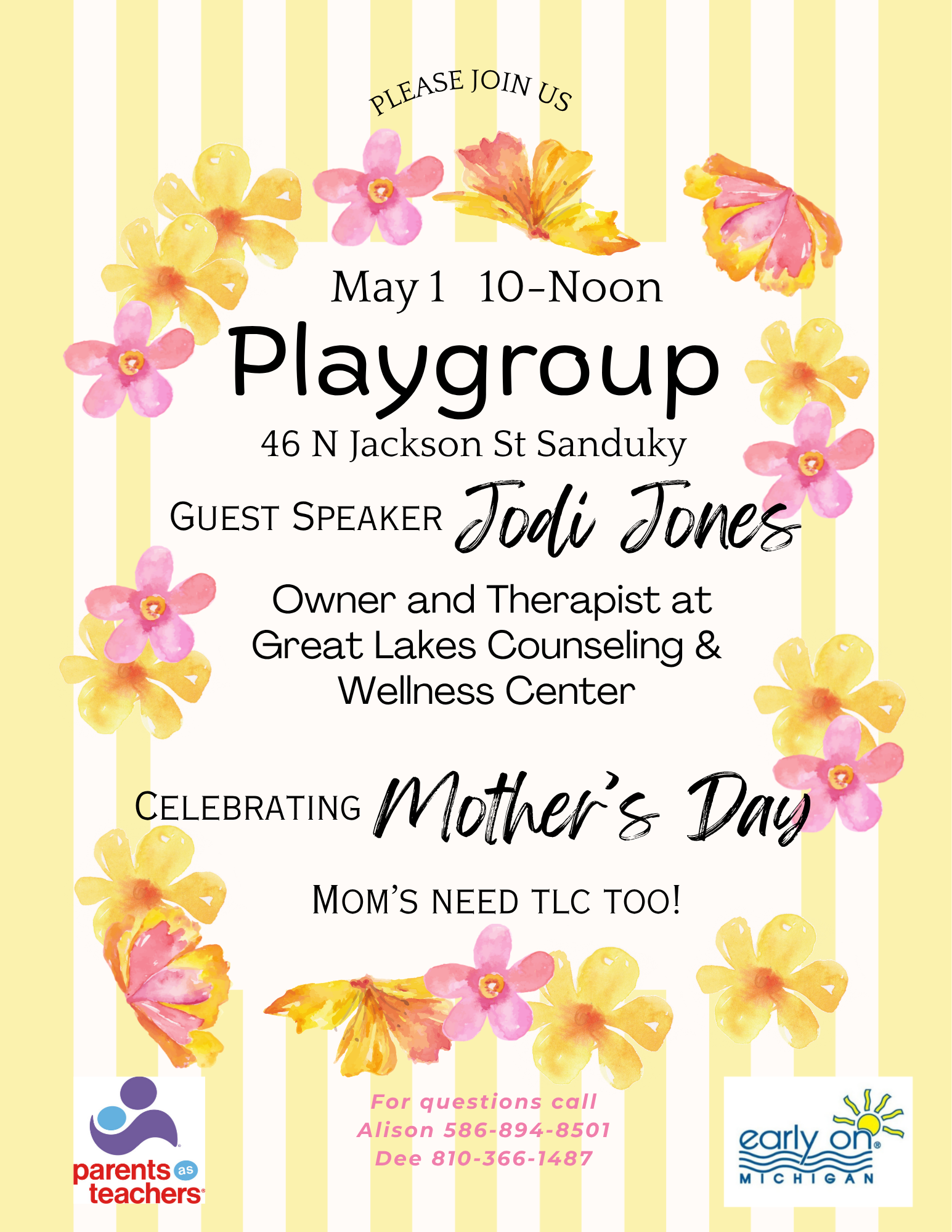 Guest speaker: Jodi Jones Celebrating Mothers Day For more information call: Alison 586-894-8501 or Dee 810-366-1487