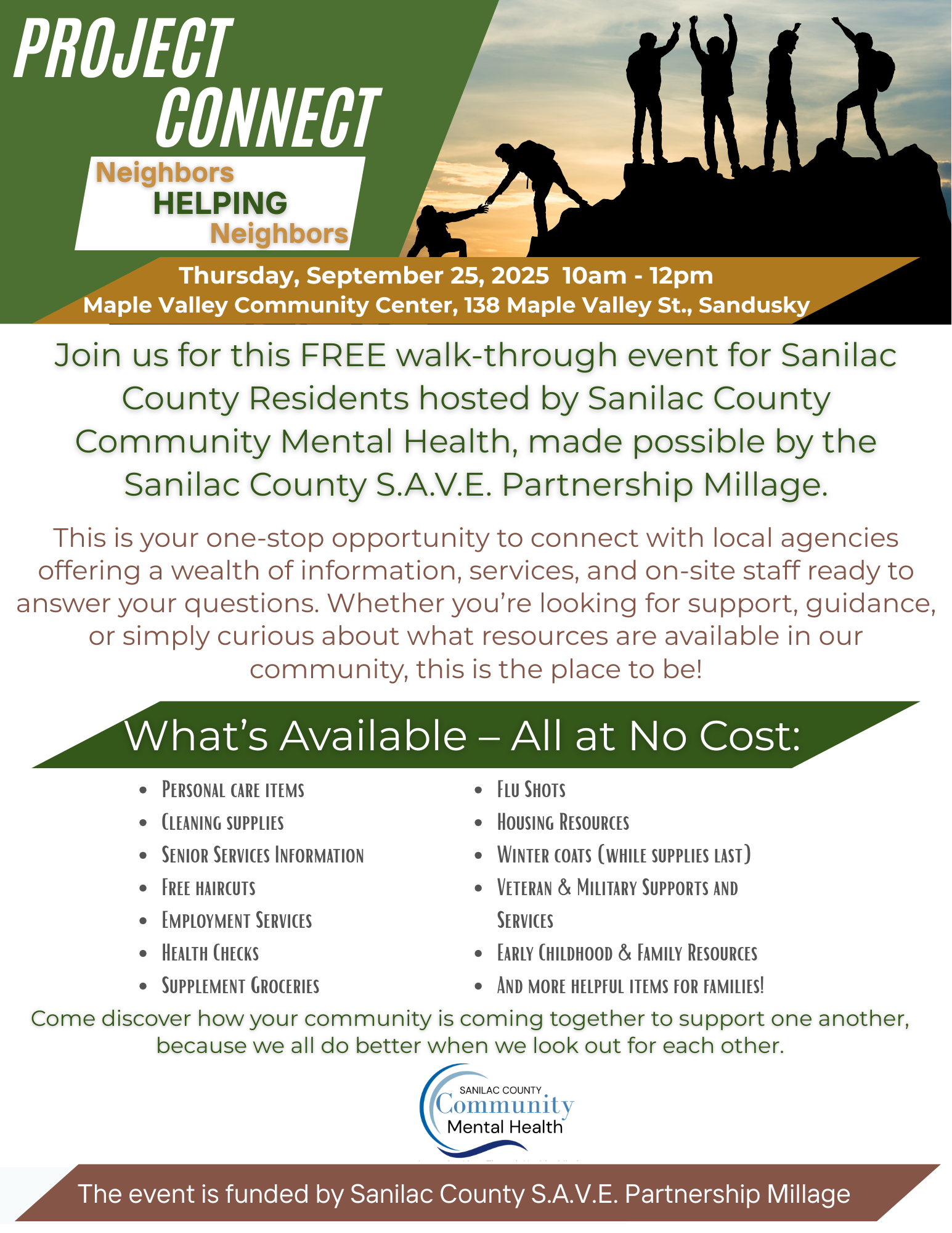 Free event providing participants the opportunity to learn about services available in Sanilac County to help them improve their quality of life and meet immediate needs.