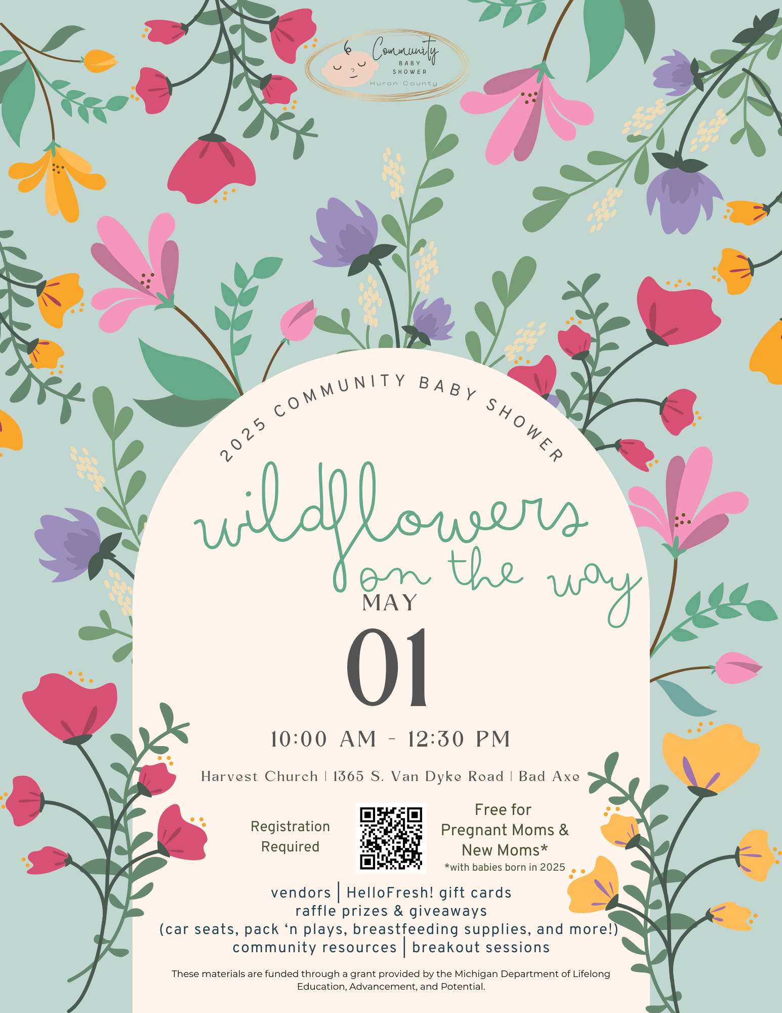 The 2025 Huron County Community Baby Shower, Wildflowers on the Way, will include vendors, raffle prizes and giveaways, community resources and vendor tables, and a variety of breakout sessions.